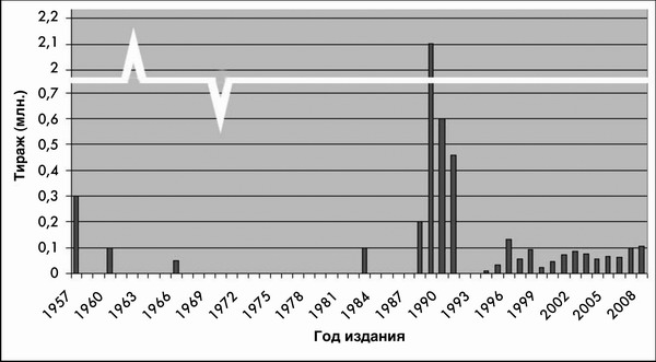 Тираж изданий произведений И.С. Шмелева на Родине в 1957–2008 гг.