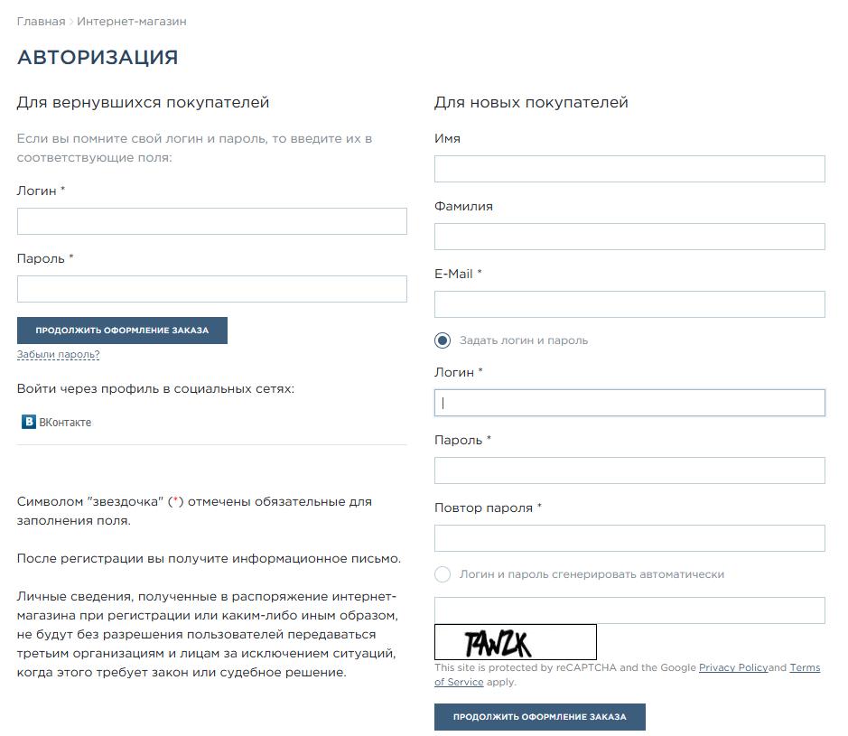 3. Далее вам будет предложено зарегистрироваться (если вы у нас в первый раз делаете покупку) или ввести свой логин и пароль.![]()