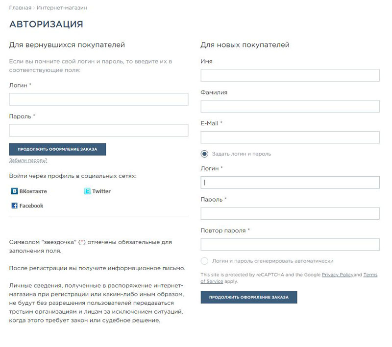 3. Далее вам будет предложено зарегистрироваться (если вы у нас в первый раз делаете покупку) или ввести свой логин и пароль.![]()